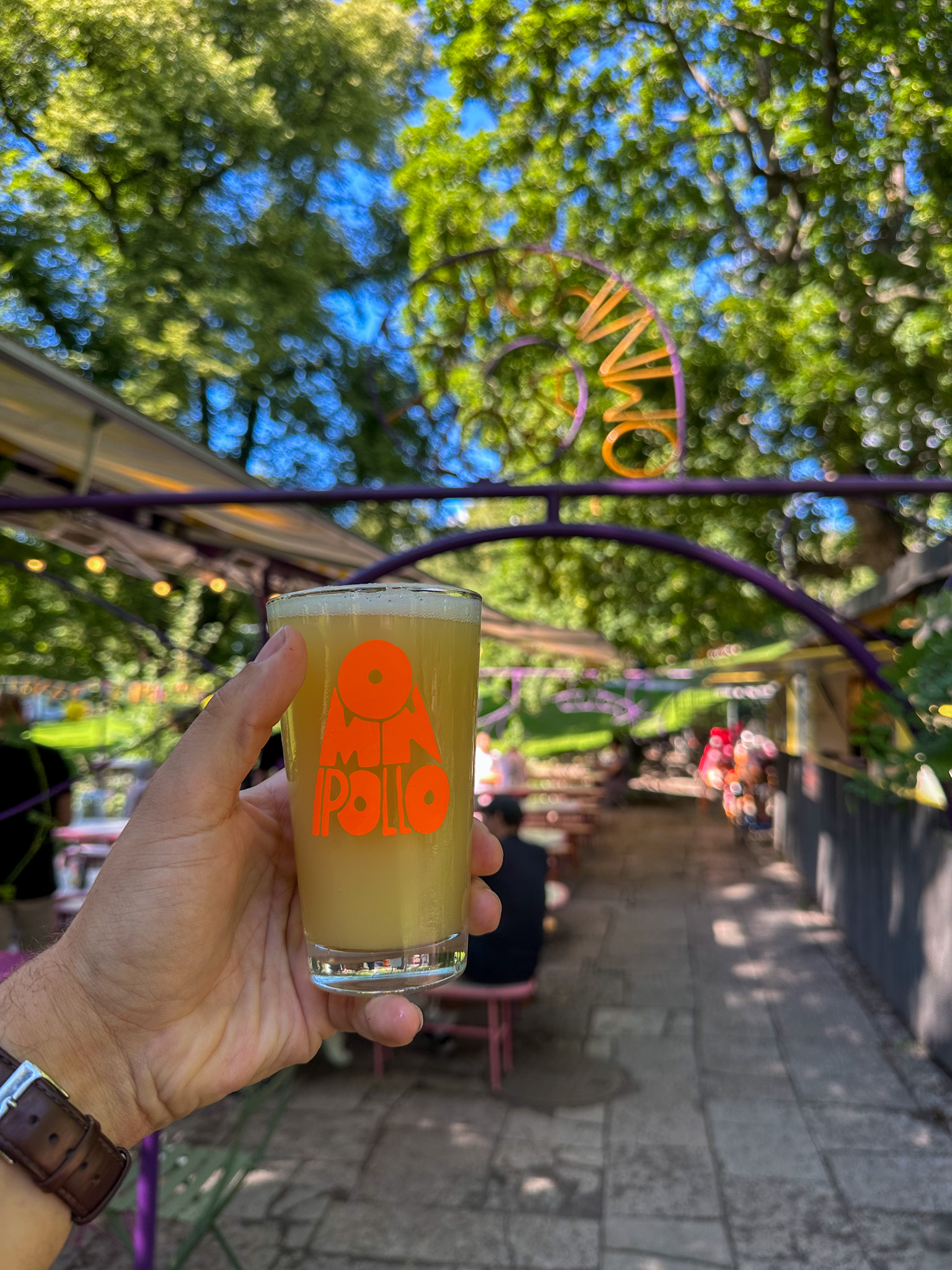 We began our trip with a visit to Omnipollo Flora, where we started with incredible burgers and sides that set the tone for the day, with a sampling of Amy, their French Oak Pilsner. Housed in an old flower shop in the middle of a park, Flora is Omnipollo's summer venue. Serving up iconic soft serves, ice creams, amongst an array of great beers.